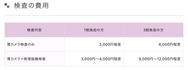 一般的には、上記が胃カメラ検査を実施した日に発生する費用であり、全てをまとめると、おおよそ下記の表の金額になります。